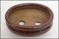 This bonsai pot has an oval shape and a curved lip.