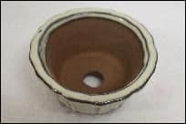 This bonsai pot has a round shape and a small lip.